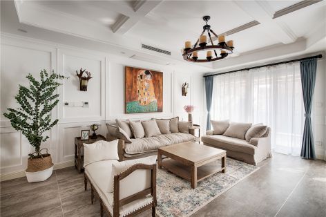 中铁阅山湖C组团130平米美式风格三室两厅装修案例风效果图