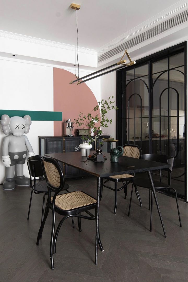 混搭风格89平餐厅背景墙装饰装修效果图
