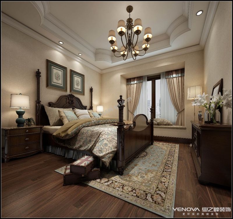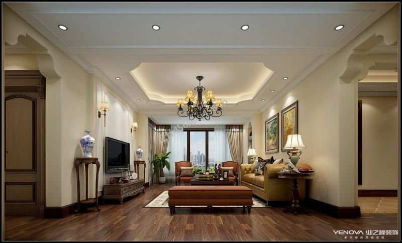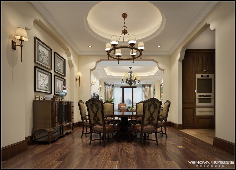 豪庭5号三居室143平米复古风格装修设计图案例风效果图