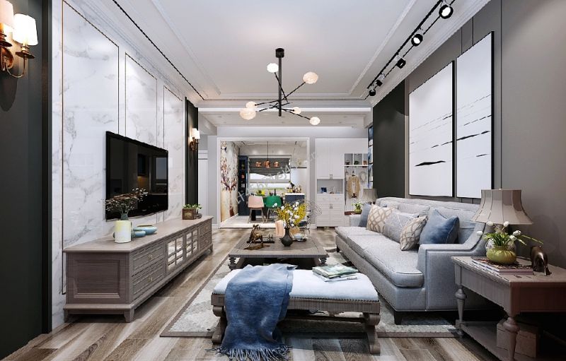 保利大国璟混搭风格90平米二居室装修案例风效果图