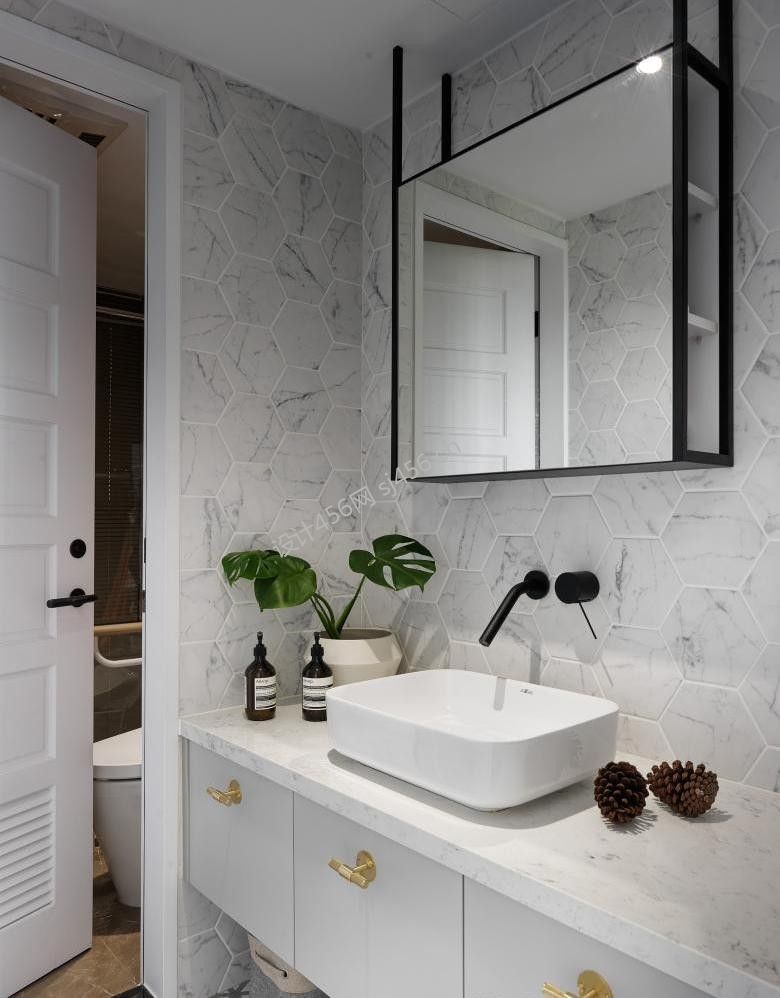 现代风格89平米卫生间洗手台柜装修设计效果图