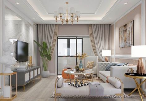 百花新苑轻奢风格98平米二居室装修设计案例风效果图