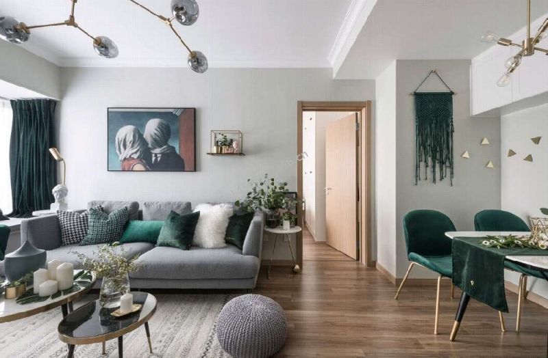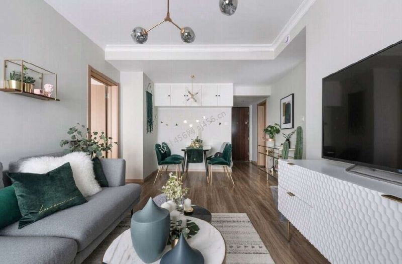 北欧风格70平米二居室客厅餐厅一体装修效果图