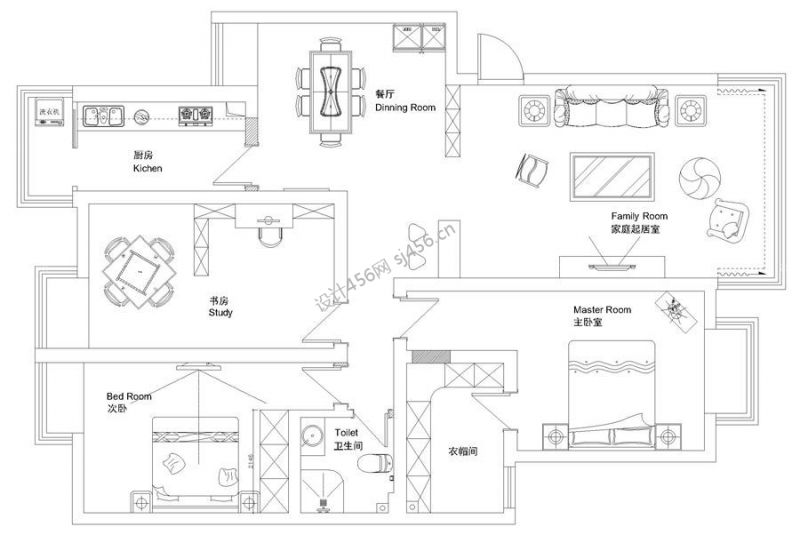 恒大帝景美式风格98平米二居室装修效果图案例风效果图