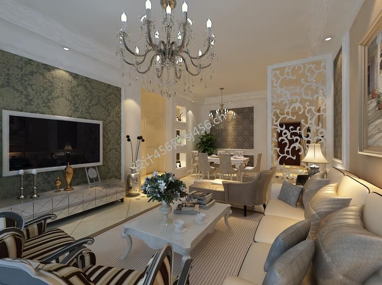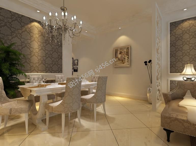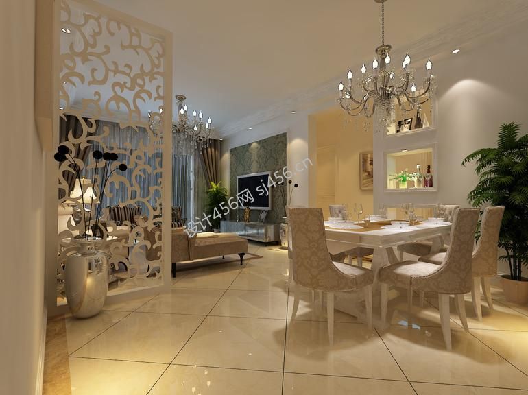山水黔城121㎡欧式风格餐厅隔断装修效果图