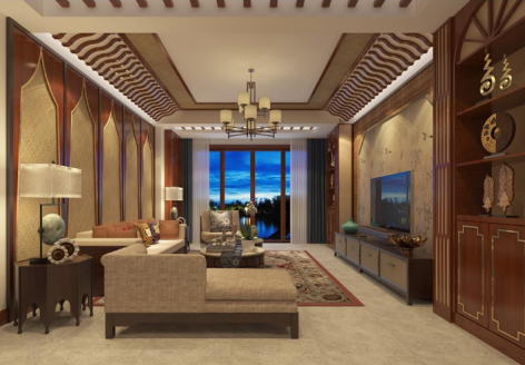 中铁逸都国际150㎡四居室东南亚风格装修效果图风效果图