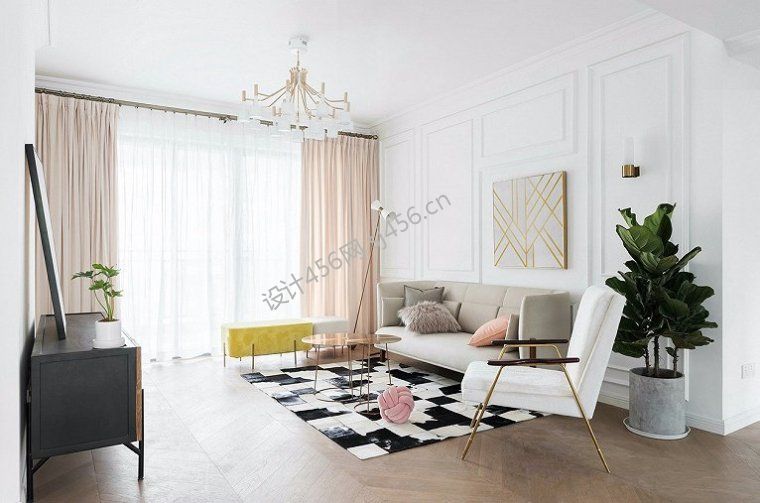 北欧风格116平米三居室客厅地毯装修设计图