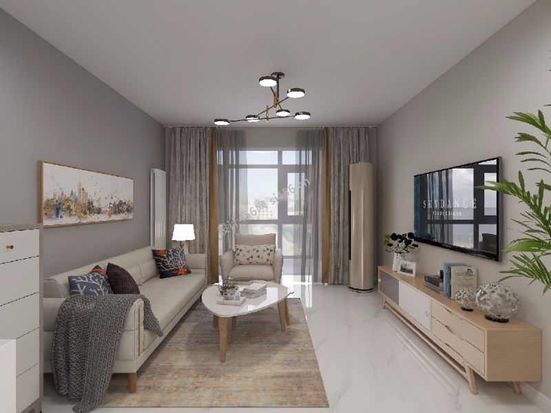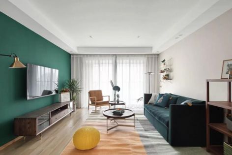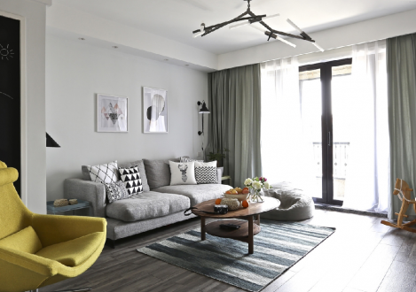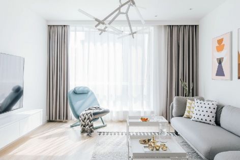 简约风格95平米三居室客厅窗帘颜色装修效果图