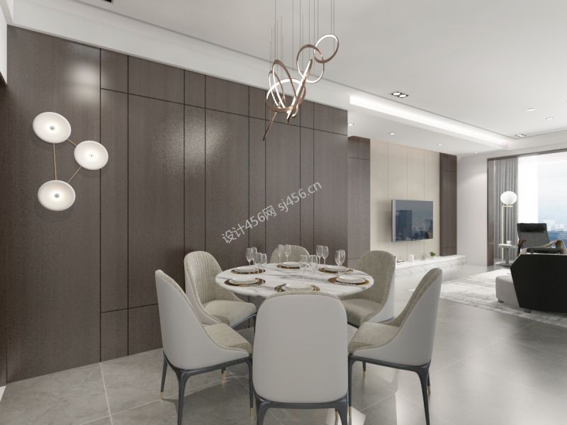 未来方舟118平米现代三居餐厅背景墙装修设计效果图欣赏
