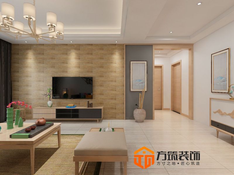 麓湖宫简约风格109平米三居室装修设计图案例