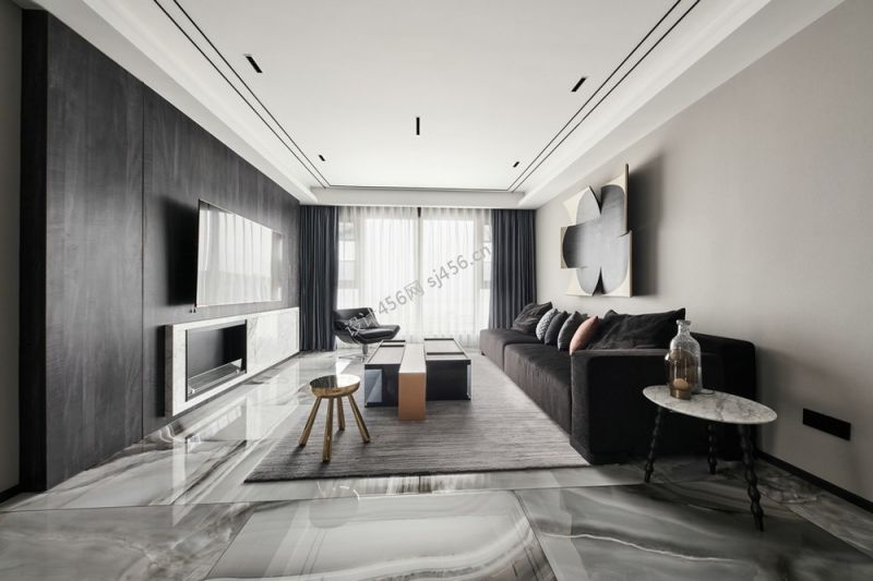 恒大滨河左岸简约风格108平米三居室装修效果图案例风效果图
