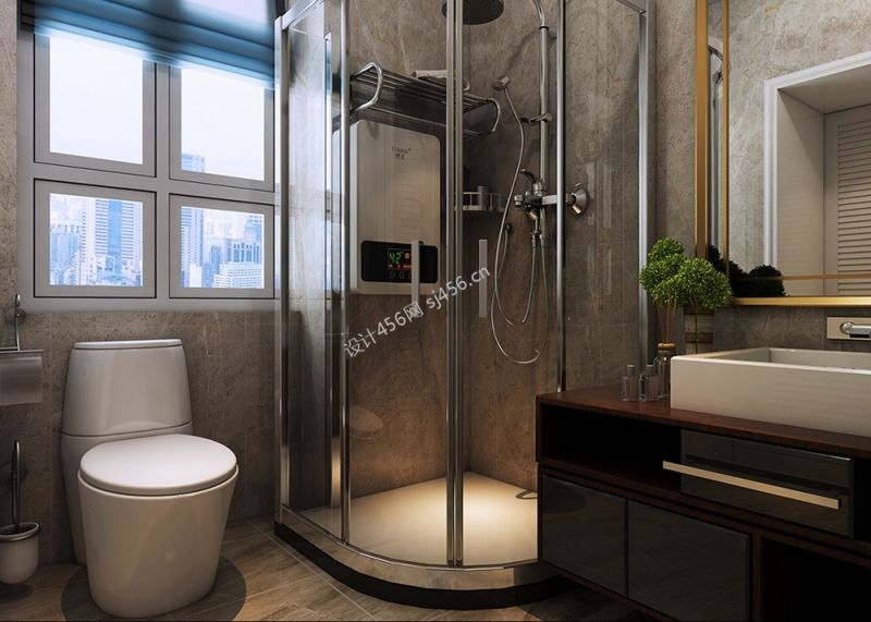 现代风格156平米卫生间浴室玻璃隔断装修效果图