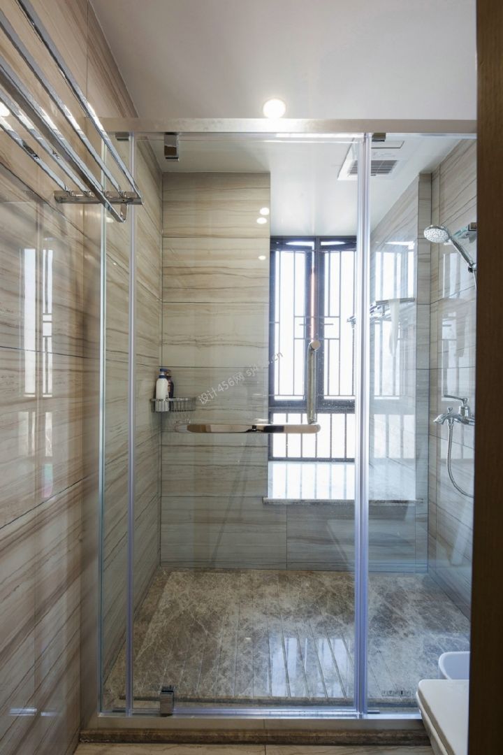 现代风格三居卫生间玻璃隔断装修效果图