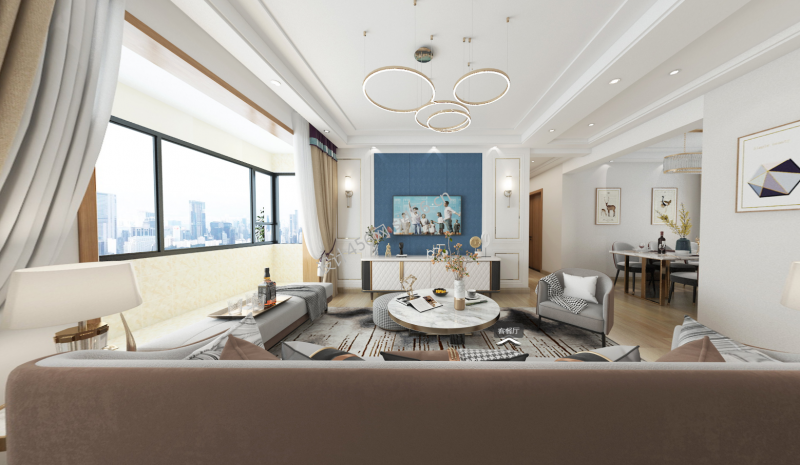 万科云岩大都会轻奢风格118平米装修设计案例风效果图