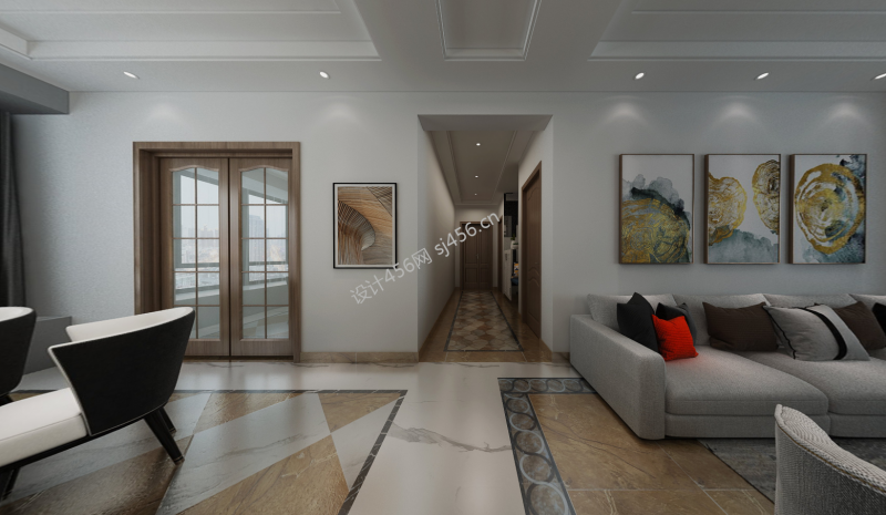 万科云岩大都会轻奢风格118平米装修设计案例风效果图