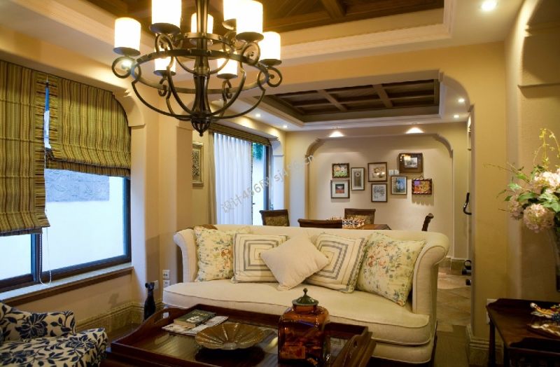 132平米美式田园跃层客厅吊顶装修效果图