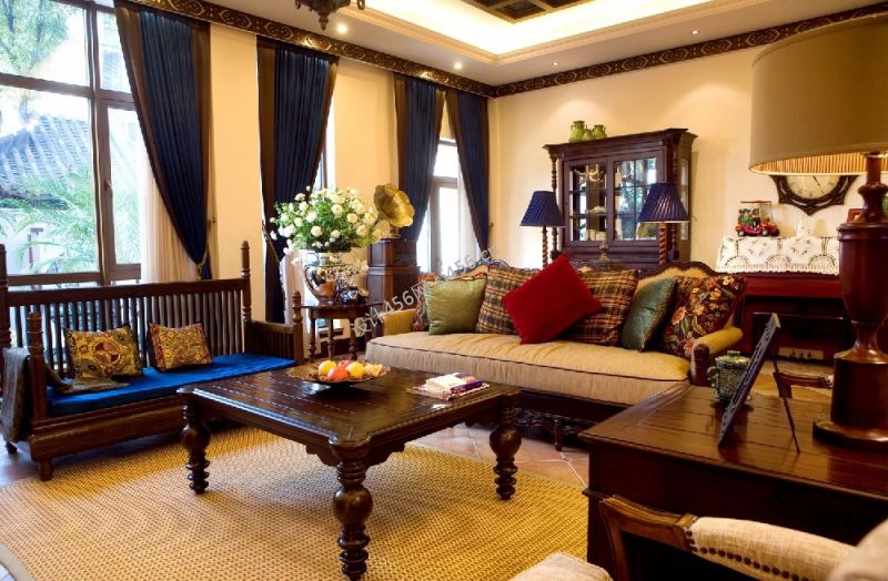 132平米美式田园跃层客厅沙发装修效果图