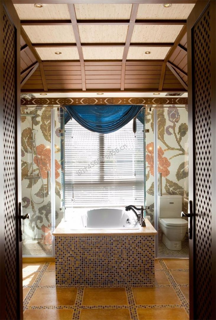 132平米美式田园跃层卫生间浴缸装修效果图