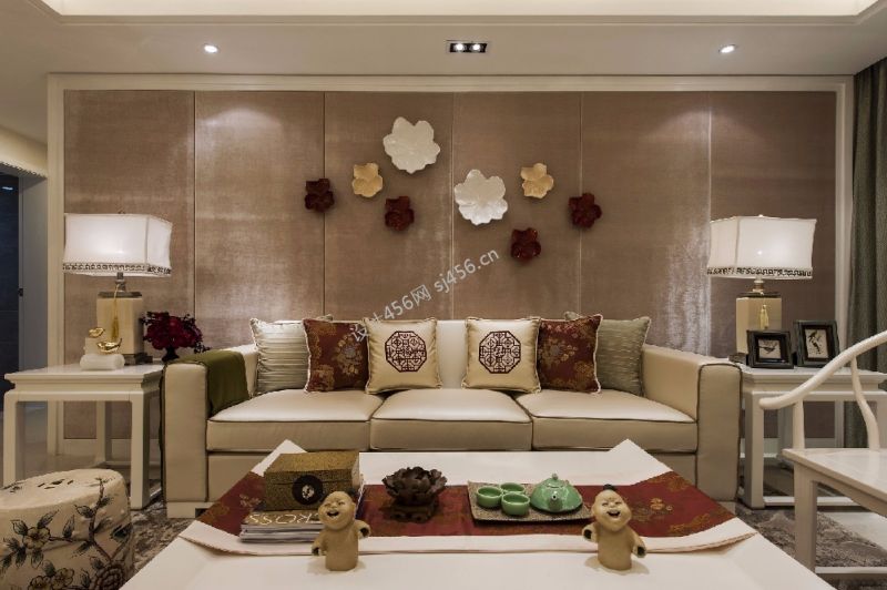 贵安时代城市花园108平米新中式三居室装修案例风效果图