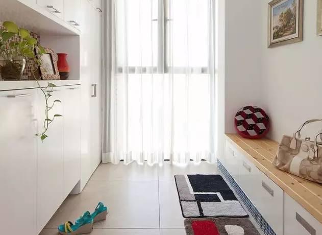不管是家里居住的人口多少,如果入户有空间,尽量多做一点鞋柜吧,顶天立地的大鞋柜真的能够收纳不少鞋子。因为一般情况下我们都低估了自己鞋子的数量。毛坯房如果入户空间不够,可以敲掉墙利用墙体空间做嵌入式鞋柜,遇到承重墙可以考虑买这种薄薄的鞋柜,当然,鞋子也就只能斜着放了。
