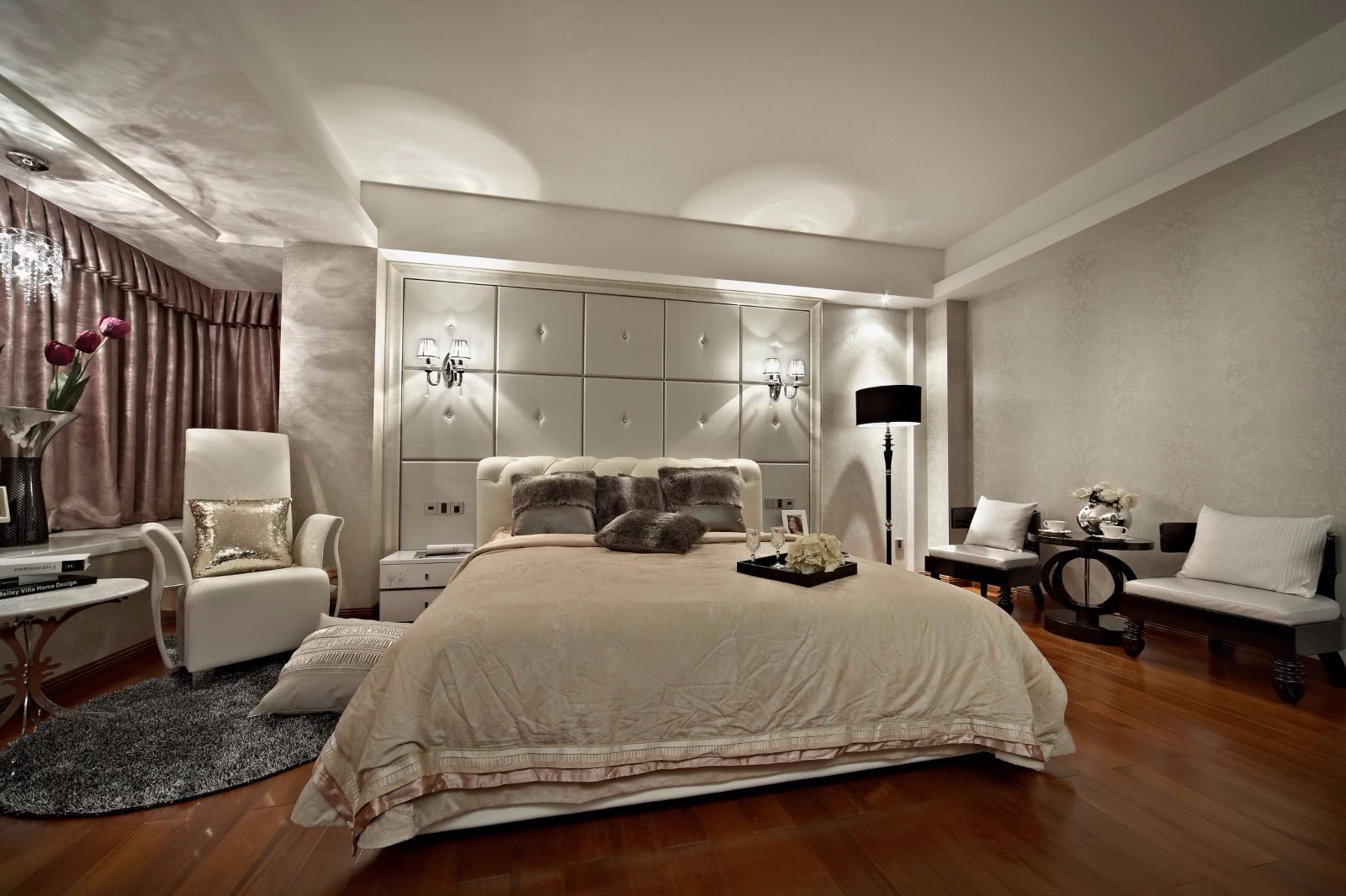 床作为卧室中必不可少的家居用品,在别墅豪宅装修卧室的时候应该好好安排一下床在卧室中的位置,然后再考虑其他的设计。先定下了床的位置、风格和色彩之后,卧室设计的其余部分也就随之展开。由于目前很多家庭的卧室面积都很有限,对于此种情况在卧室中不要摆放过多的家具,以免给人留下压抑感。
