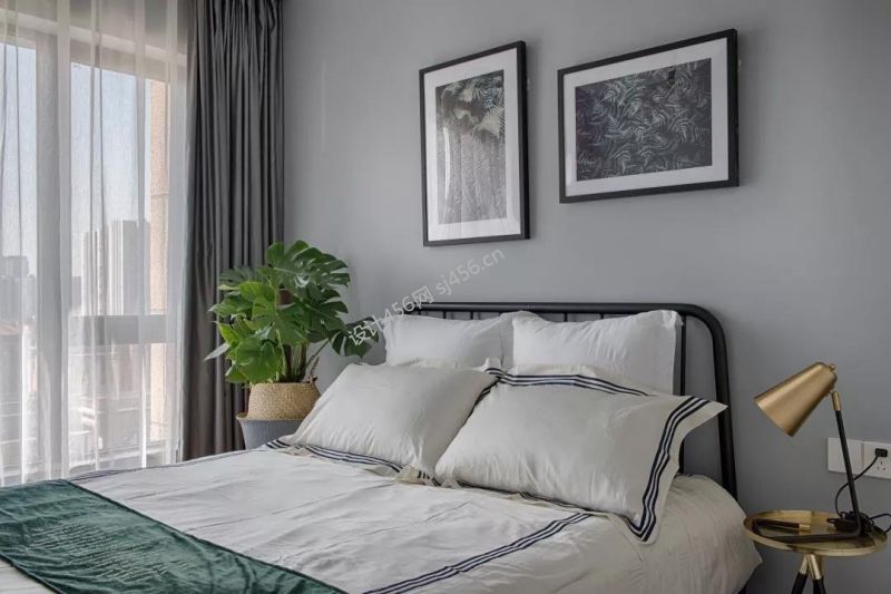 现代风格95平米三室两厅卧室窗帘装修效果图