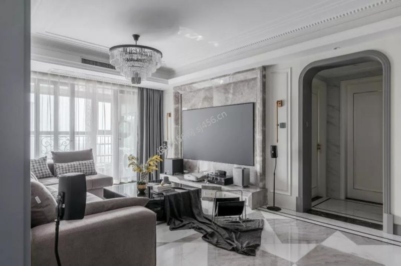 中南春风南岸轻奢风格95平米三室两厅装修案例风效果图