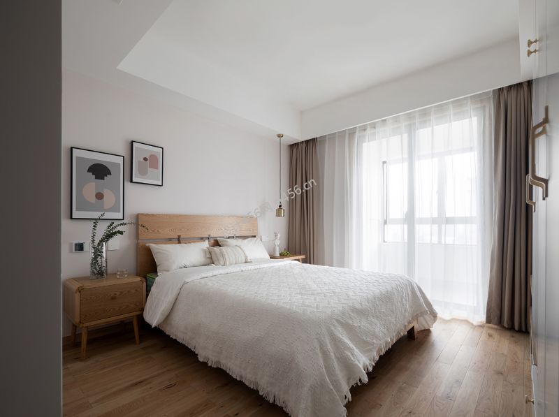日式风格114平米三室两厅卧室窗帘装修效果图
