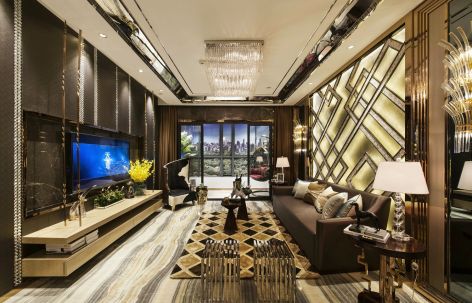 广州融创文旅城奢华风格126平米三室两厅装修案例风效果图