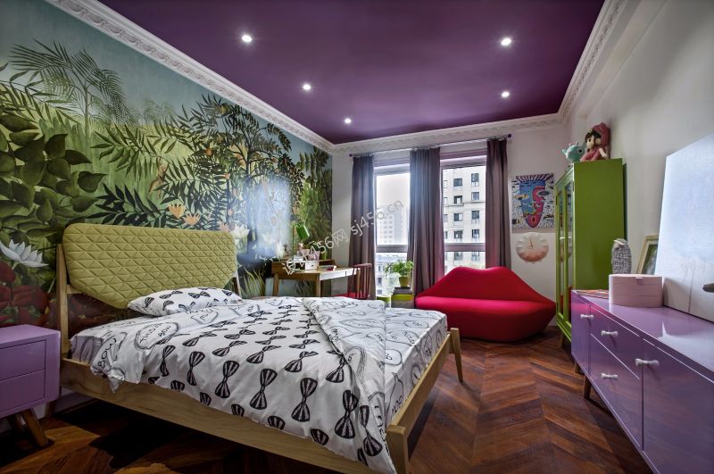 混搭风格128平米三室两厅卧室床头装修效果图