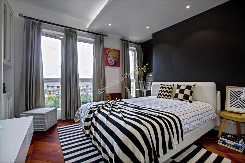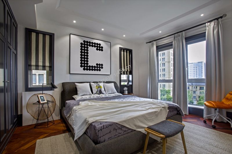 混搭风格128平米三室两厅卧室窗帘装修效果图