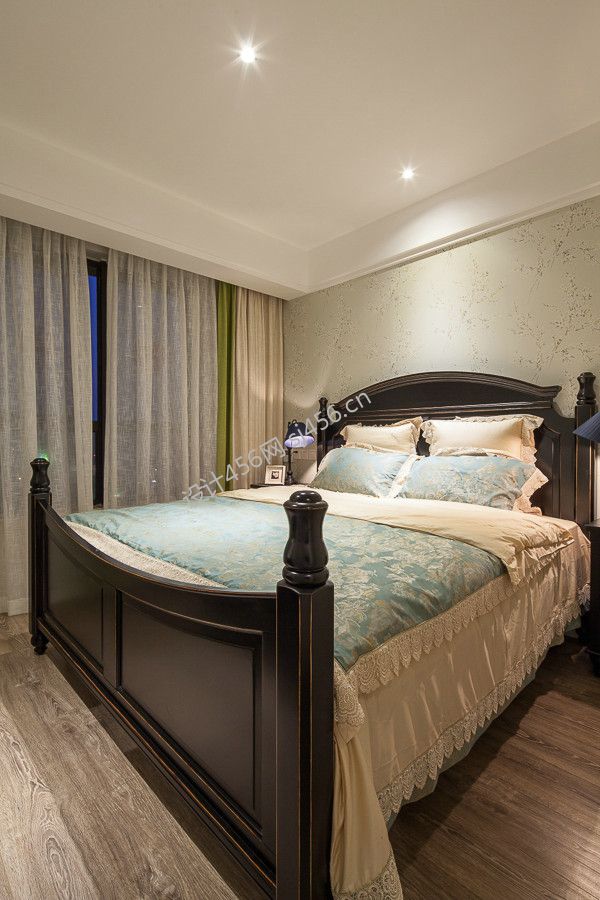 田园风格70平米两室两厅卧室窗帘装修效果图
