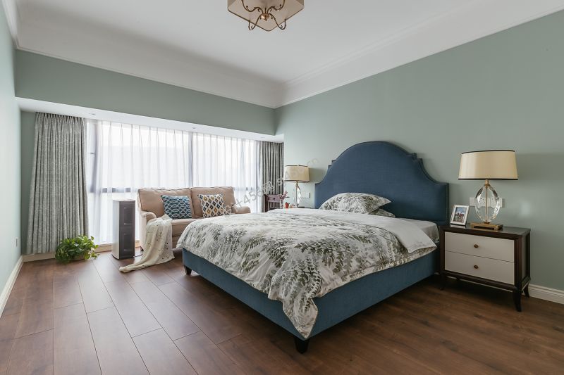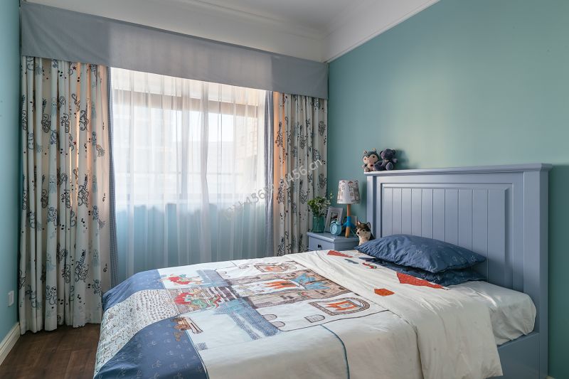 美式风格94平米三室两厅卧室窗帘装修效果图