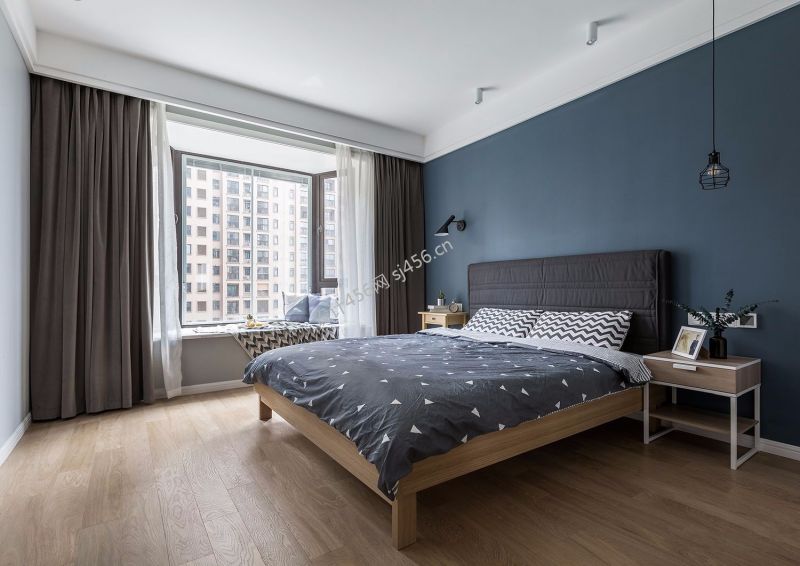 北欧风格105平米三室两厅卧室窗帘装修效果图