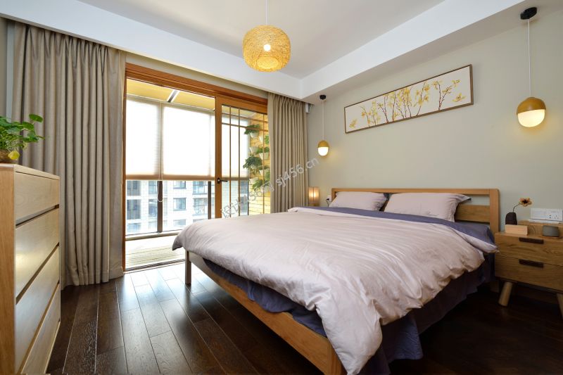 104平米日式风格三室两厅卧室窗帘装修效果图