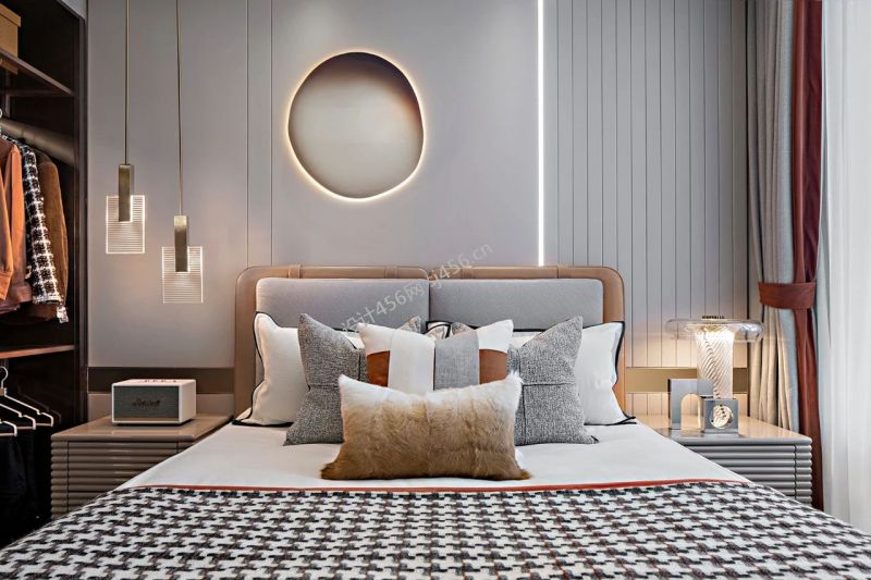 91平米轻奢风格三室两厅卧室床头装修效果图