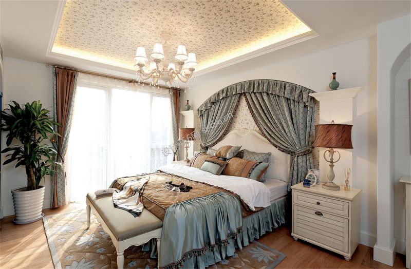 123平米地中海风格三室两厅卧室窗帘装修效果图