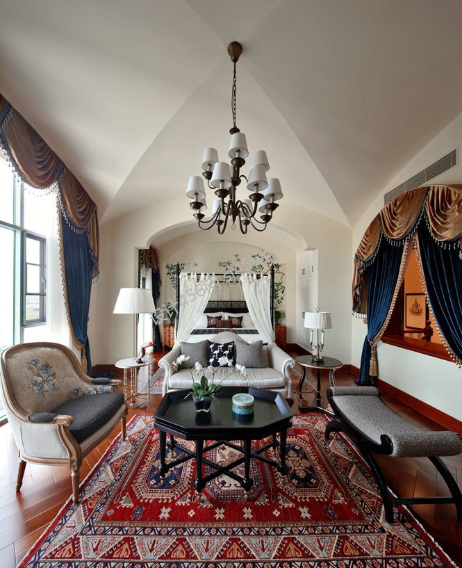复古美式300平米别墅卧室家装效果图