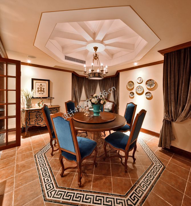 复古美式300平米别墅餐厅家装效果图