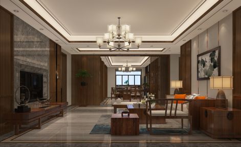 华发江南府中式风格145平米四室两厅装修案例风效果图