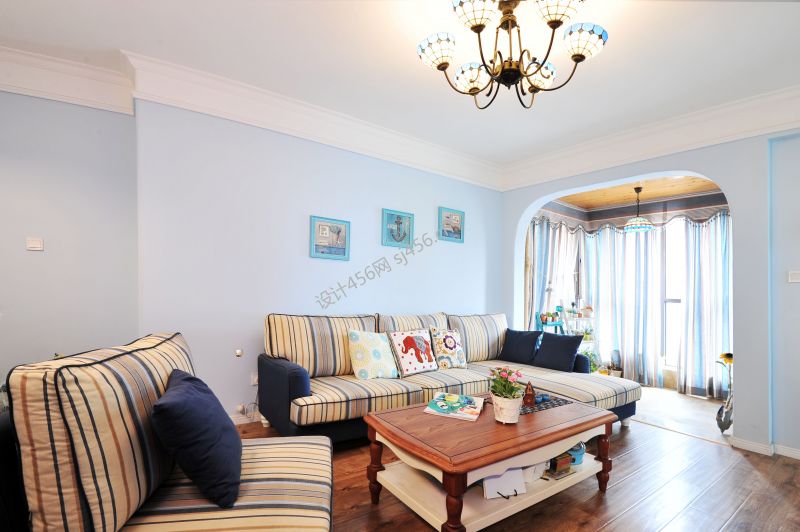 地中海风格71平米两室两厅客厅吊灯家装效果图
