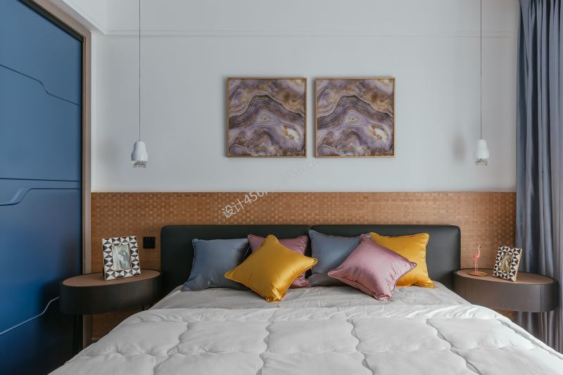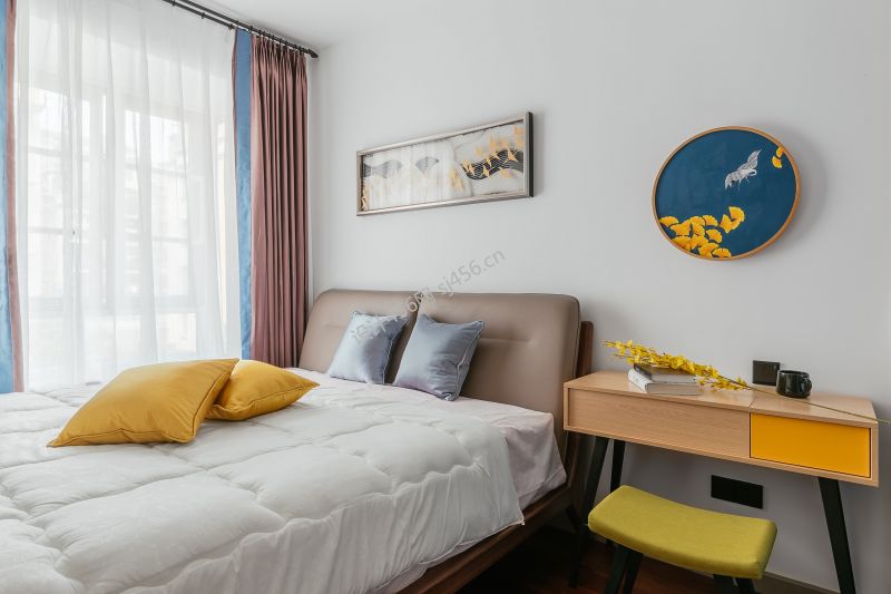 北欧风格75平米两室两厅卧室窗帘装修效果图