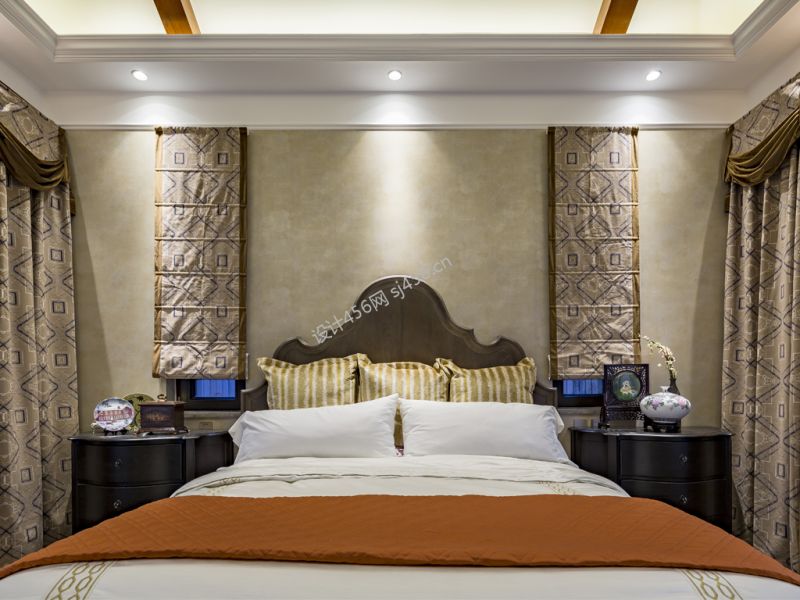 美式风格255平米别墅卧室床头装修效果图