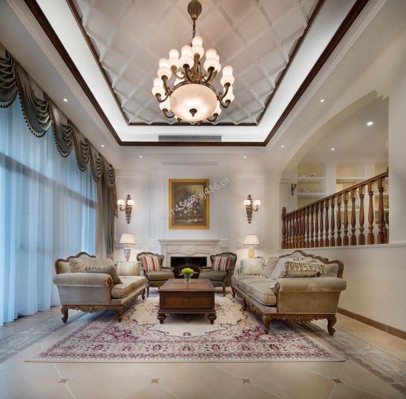 从都国际庄园美式风格255平米别墅装修案例风效果图
