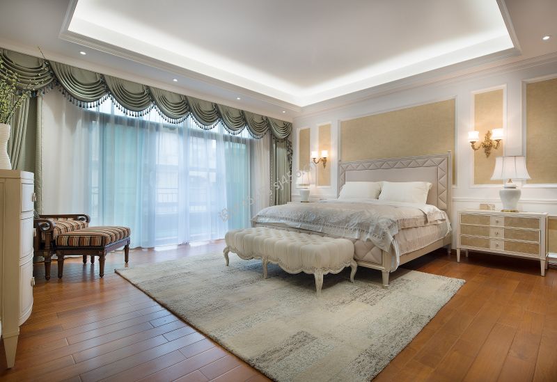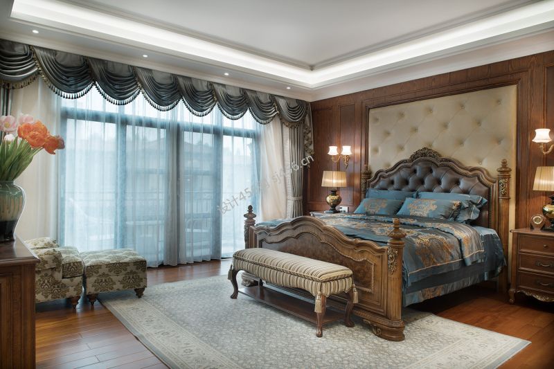 美式风格255平米别墅卧室床头家装效果图