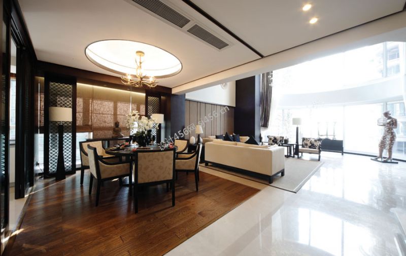 华发中央公园简约新中式267平米别墅装修案例风效果图