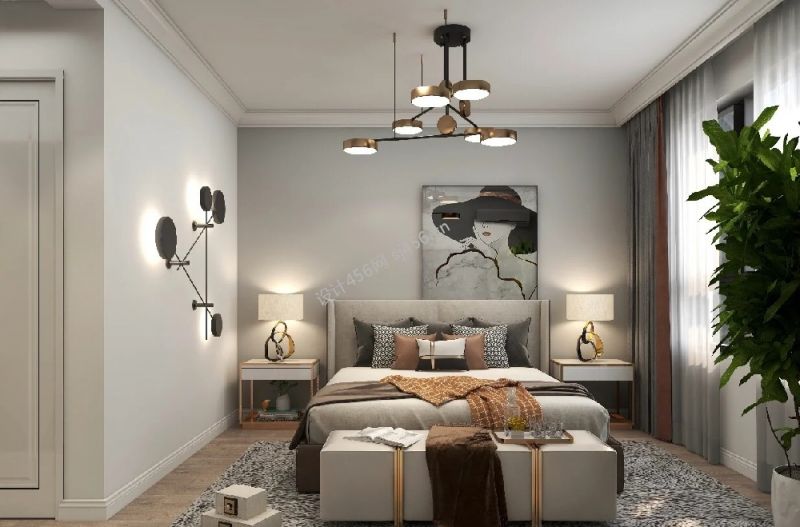 北欧风格105平米三居卧室床装修设计图