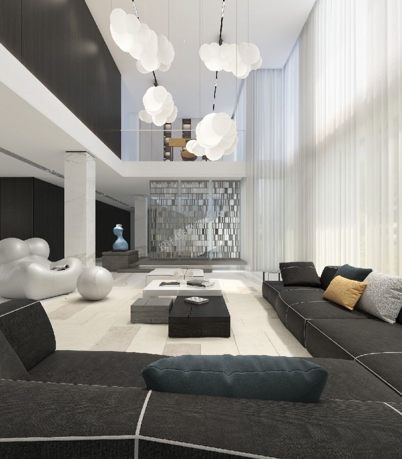300平米别墅现代极简风格挑高客厅装修案例