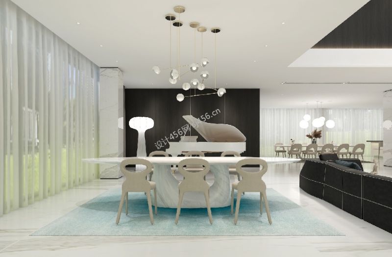 现代极简风格300平米别墅餐厅吊灯装修效果图