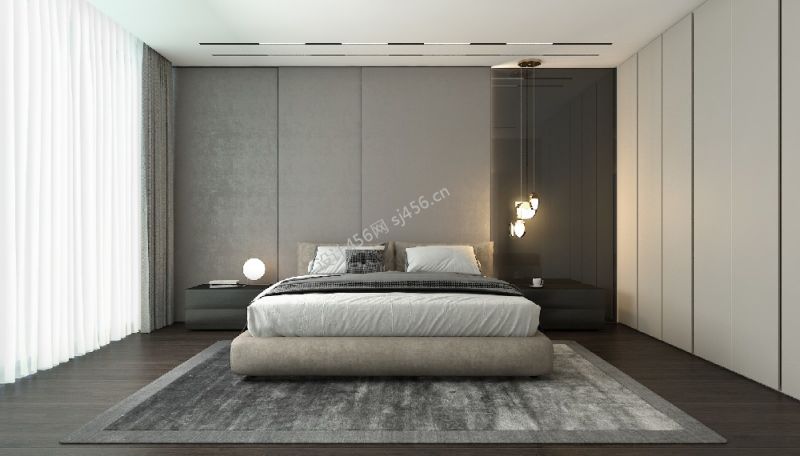 300平米现代极简风格别墅卧室格局装修效果图